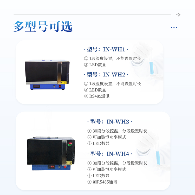 7寸液晶触摸屏;30段程序控温,实验数据、温度曲线等数据一目了然;恒温和恒功率模式,定值和程序模式,可切换使用